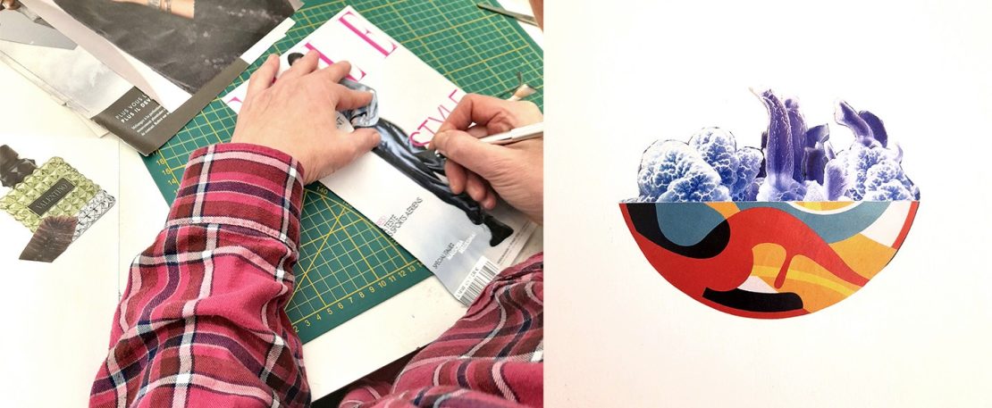 - Formes inédites: nous allons ensuite explorer comment le collage permet de faire naitre des réalités nouvelles en modifiant ou détournant des images. On s'approprie les images prises dans les magazines divers, que l'on détoure, et que l'on va combiner pour créer des visuels étonnants et totalement originaux. Il s'agit de se laisser surprendre et le plaisir est garanti.