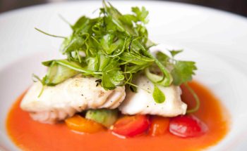 Au menu du cours de cuisine: – Samosas de crustacés, hollandaise marinière – Filet de biche basse température en croûte d’amandes,